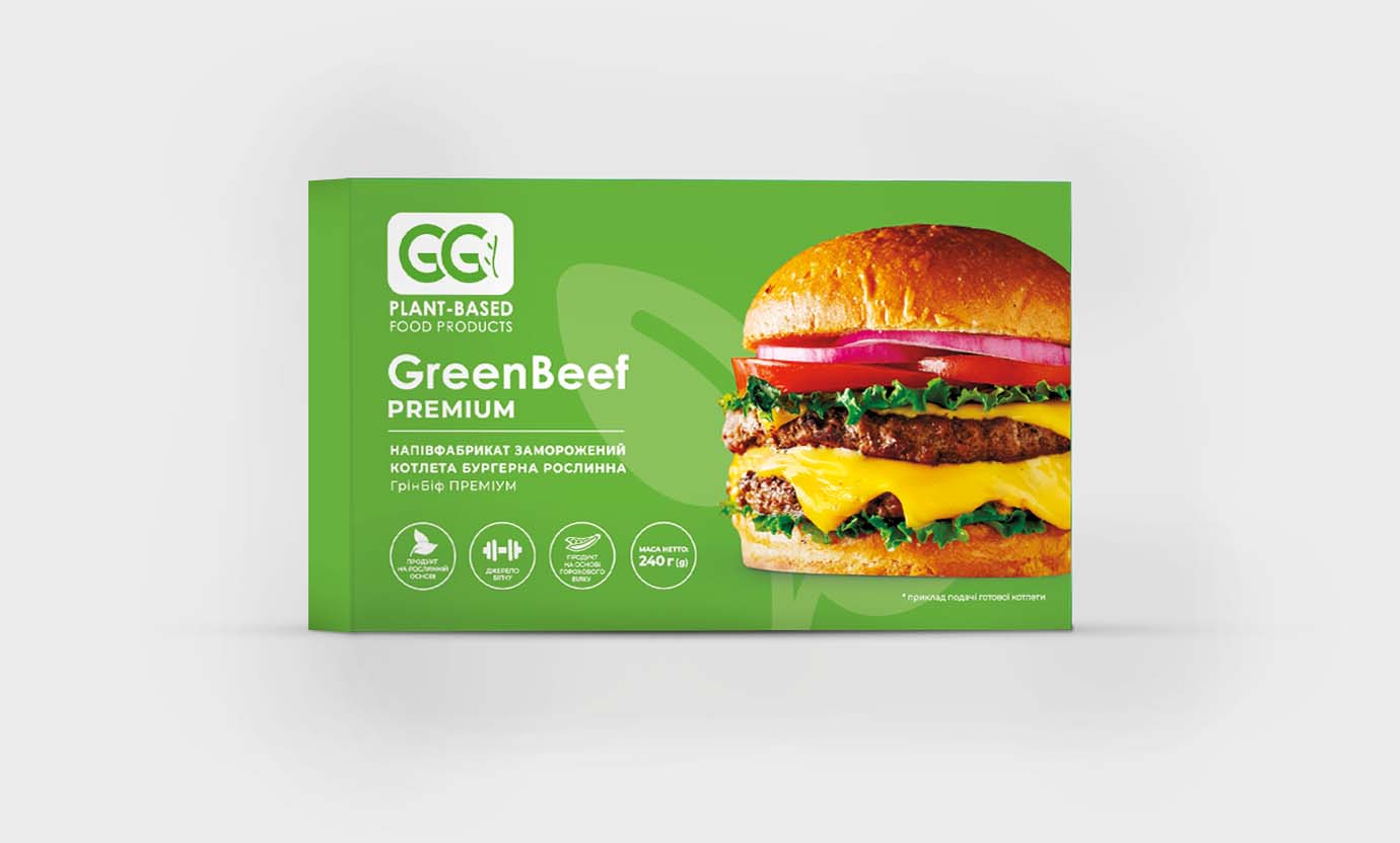 GreenBeef Premium — бургерна «м’ясна» котлетка, створена з унікальної суміші простих інгредієнтів: горох, кокосова олія та буряковий сік.