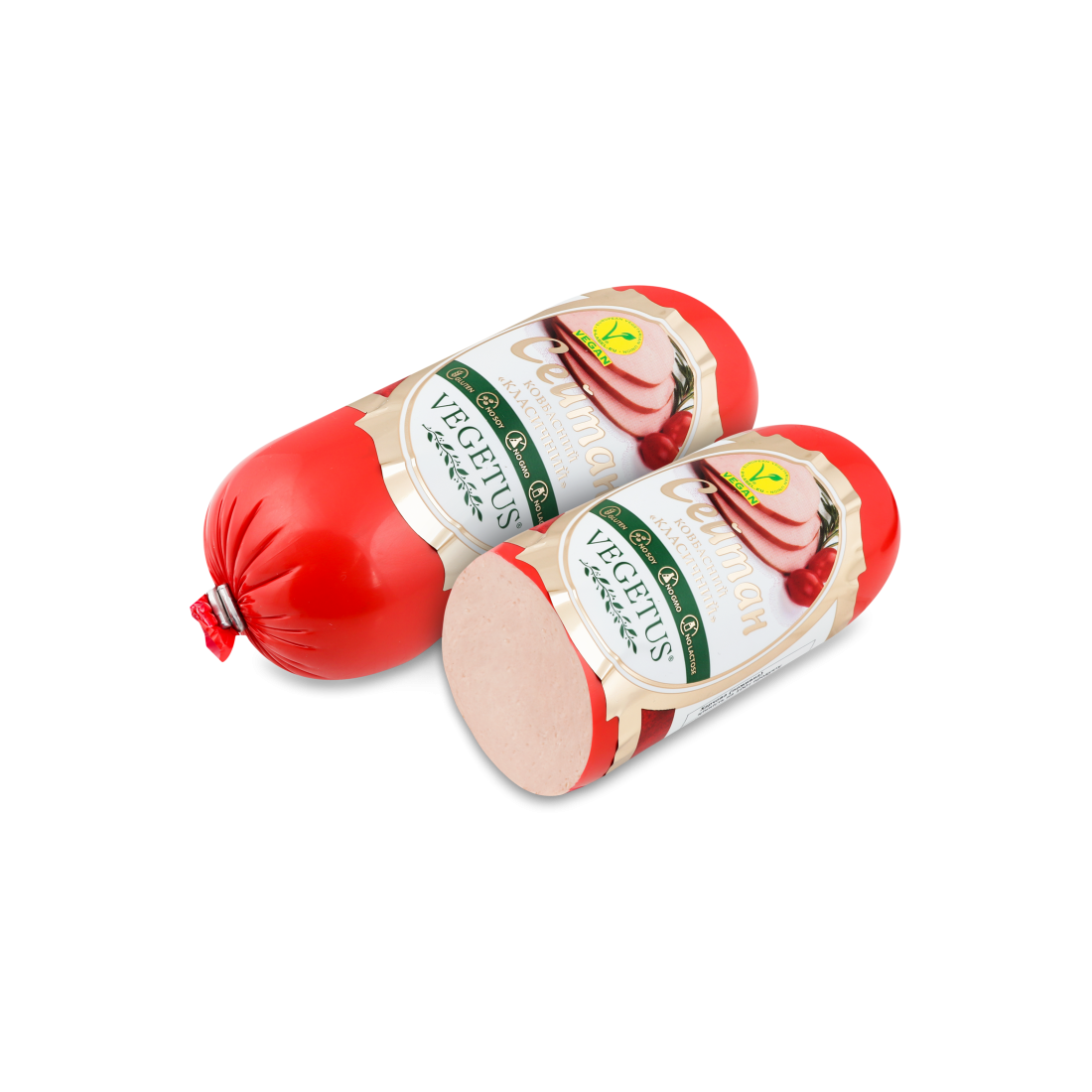 Склад: вода, сейтан (вода, пшеничний білок), олія кокосова, олія соняшникова, крохмаль кукурудзяний, крохмаль пшеничний, спеції та екстракти спецій (білий перець, коріандр, мускатний горіх, імбир), загущувач (карагенан), гідролізований рослинний білок, аромат (дріжджовий екстракт), сіль, барвник натуральний (ферментований рис). Харчова (поживна) цінність на 100 г продукту: 233,5ккал/(976,0 кДж), Жири 13,1 (г), з них насичені 5,7 (г), Вуглеводи 6,8 (г), з них цукри 1,2 (г), Білки 22,1 (г), Сіль 1,2 (г).