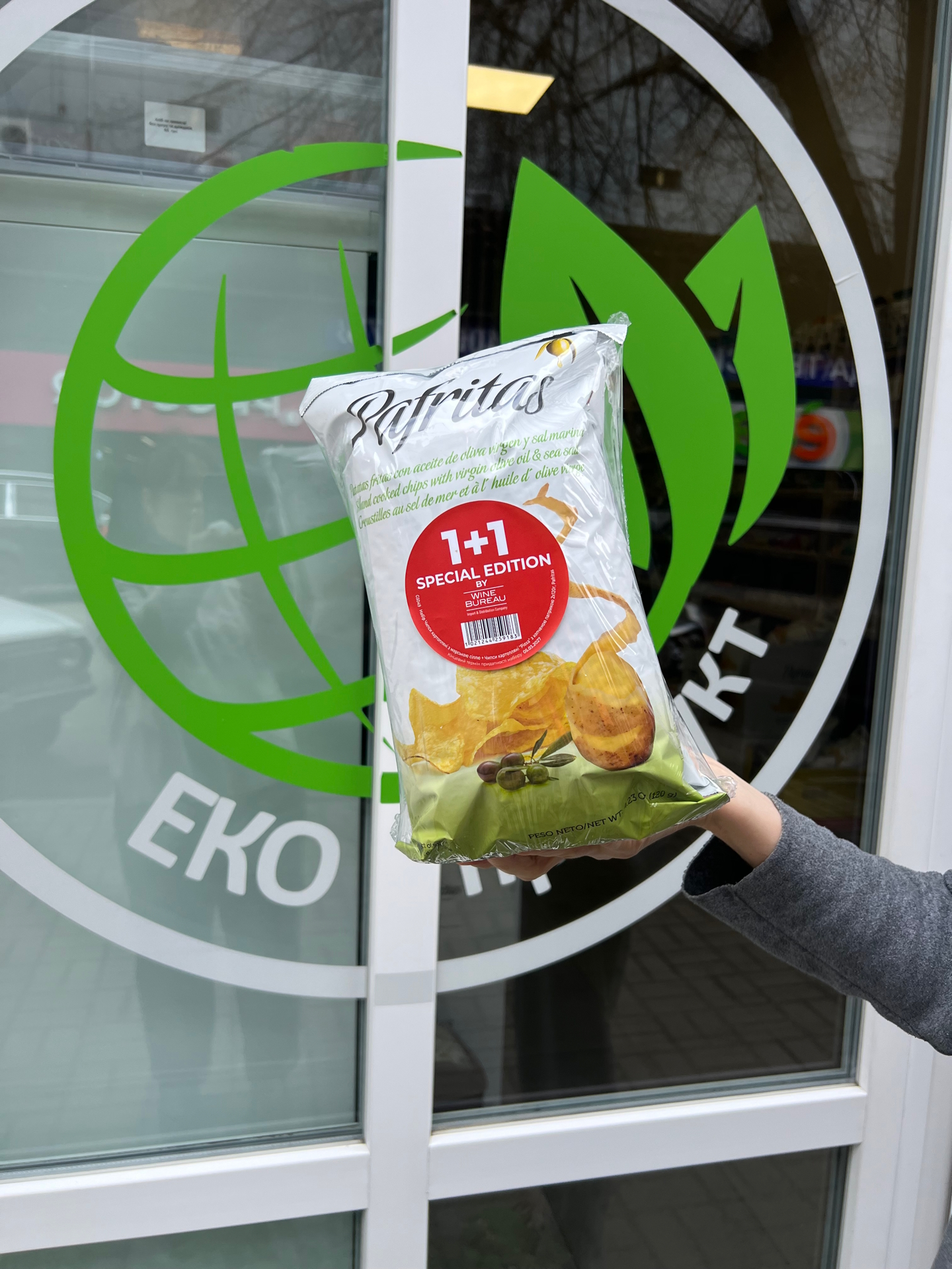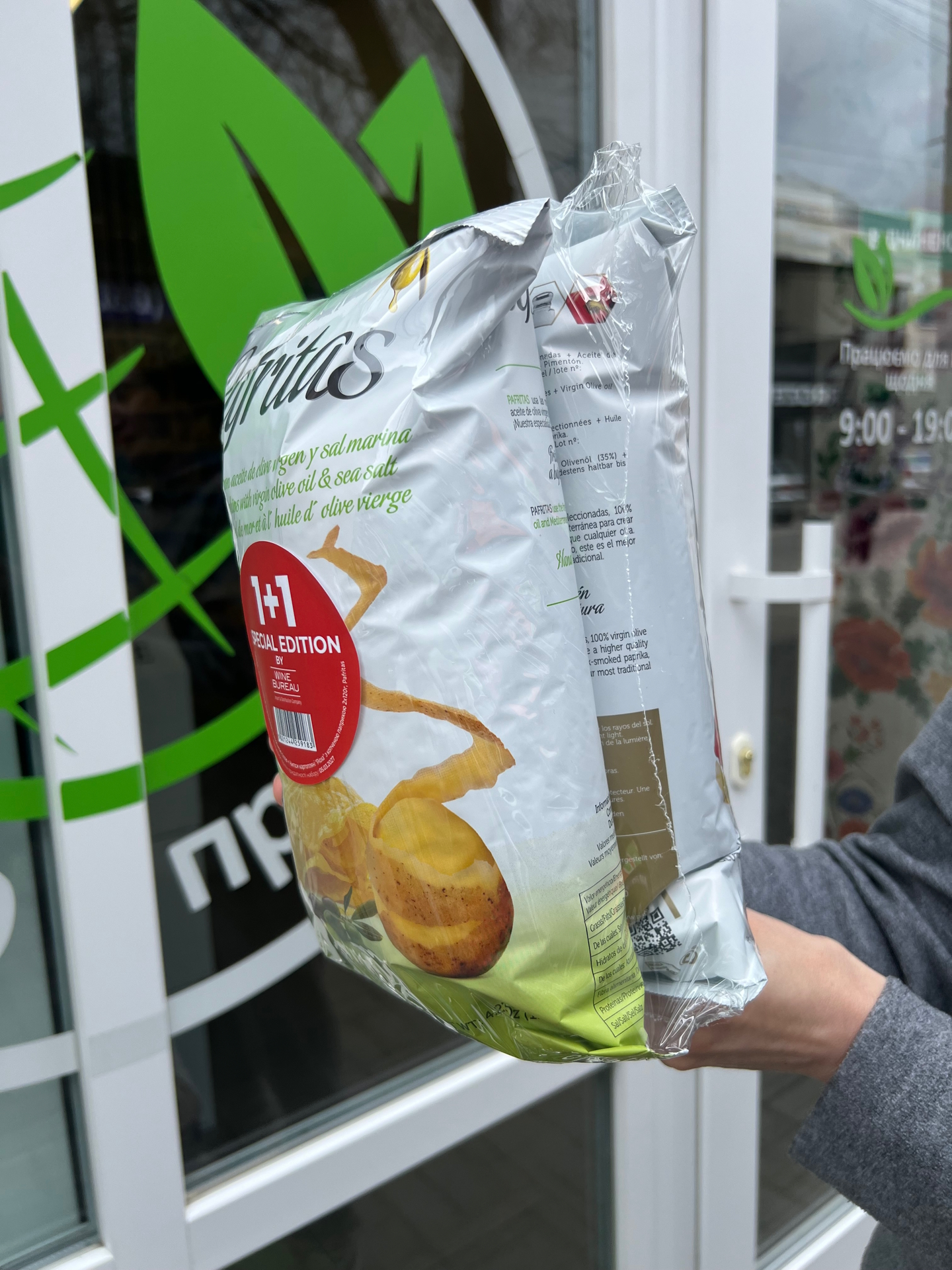 Формат 1+1 дозволяє отримати більше продукту за ту ж ціну, що особливо актуально для компаній або сімейного споживання. Герметична упаковка зберігає свіжість і хрусткість, а компактний розмір легко брати із собою в дорогу або на відпочинок.