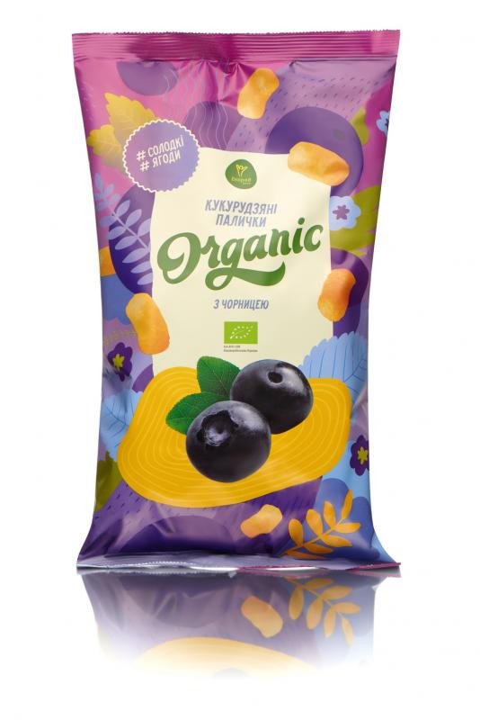 Органічні кукурудзяні палички з чорницею — приголомшлива новинка серед хрустких снеків. Оригінальне поєднання кукурудзи з соковитими ягодами робить їх смак яскравим і насиченим. В її натуральної м’якої кислинки відчувається багатство літнього сезону і щедрість вітамінів.