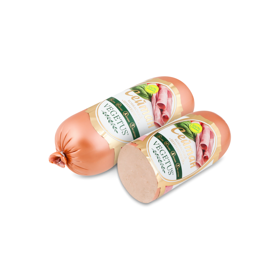 Склад: вода, сейтан (вода, пшеничний білок), олія кокосова, олія соняшникова, крохмаль кукурудзяний, крохмаль пшеничний, спеції та екстракти спецій (чорний перець, душистий перець, коріандр, мускатний горіх), загущувач (карагенан), гідролізований рослинний білок, аромат (дріжджовий екстракт), сіль, барвник натуральний (ферментований рис). Харчова (поживна) цінність на 100 г продукту: 235,3ккал/(982,9 кДж), Жири 13,7 (г), з них насичені 4,3 (г), Вуглеводи 4,4 (г), з них цукри 1,5 (г), Білки 23,6 (г).